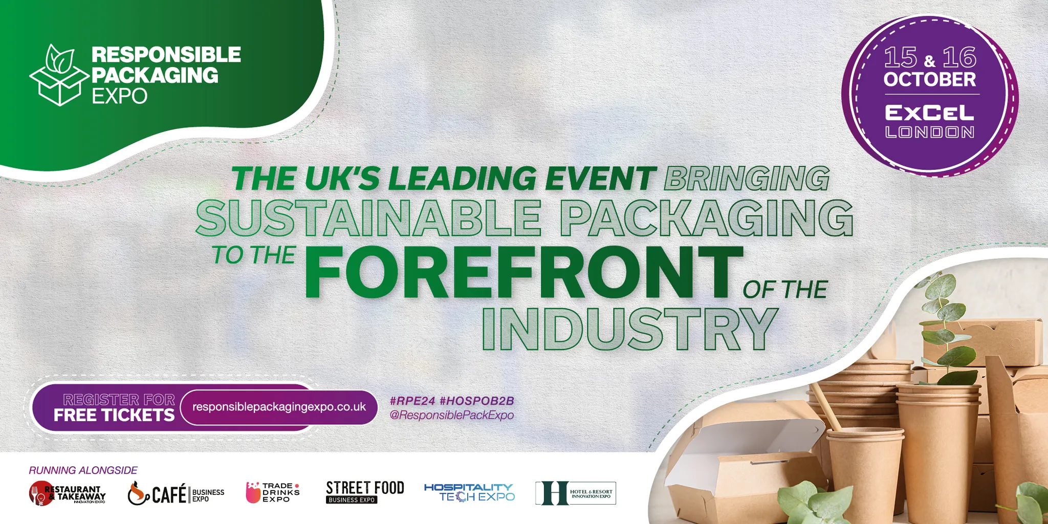 Returning to the ExCeL London on the 15th & 16th of October, Responsible Packaging Expo is the UK's leading event bringing sustainable packaging to the forefront of the industry. If you’re looking for the newest responsible solutions for your hospitality business, you can trust that this event is the full package! Sustainability is at the forefront of many professional’s minds, with packaging being one of the most straightforward and effective ways to increase a company’s green identity. That’s why Responsible Packaging Expo is a must-attend event for everyone operating in the hospitality industry. Attendees can expect to absorb insights from some of the brightest minds in the industry, w...ith an impressive lineup of seminars sharing nuggets of wisdom about everything from recyclables to edible packaging. Along with the educational side, there will also be countless relevant products on display for visitors to browse, get more familiar with, and even order at special discounted prices. The event will also feature a curated sustainability trail, focusing on core aspects of eco-friendliness in hospitality. This trail will highlight businesses working in the fields such as biodegradable packaging, and creative food waste solutions. The good news? Tickets to this event are FREE! This means you can enjoy all the excitement and education of the event without spending a penny. Set yourself up for packaging success, ingratiating yourself into a community of leading industry professionals. Even better is the fact that your free ticket also offers you access to 6 other shows running concurrently at the ExCeL, converging to form The Hospitality B2B Portfolio, the leading B2B event to inspire growth in the hospitality industry. Registration is open, so secure your ticket today!Read more